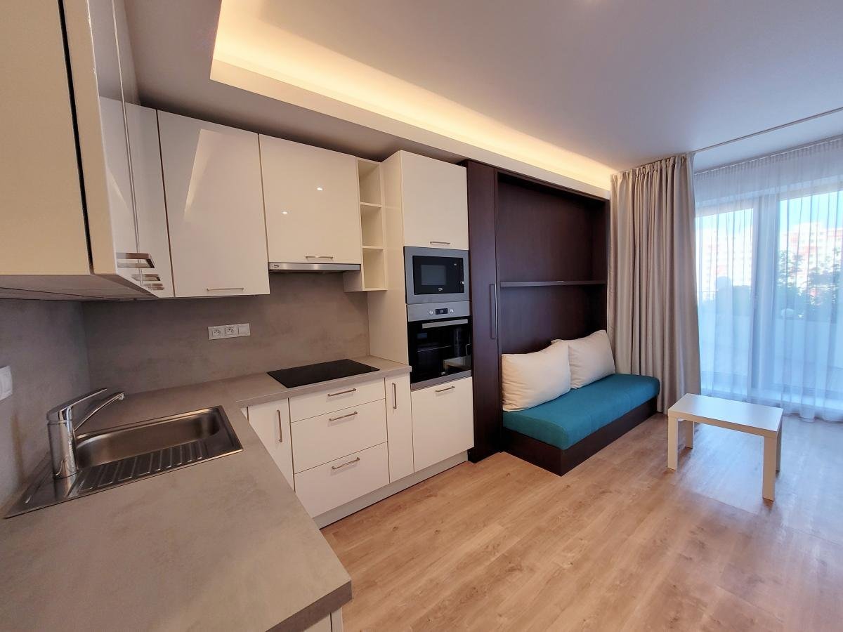 Příjemný, útulný byt, kompletně zařízený se všemi elektrospotřebiči. Navíc moderní obývací sofa s integrovanou sklápěcí postelí Vám celý byt opticky výrazně zvětší. Součástí bytu je rovněž komfortní nepřímé LED osvětlení a zdravotní matrace! K tomuto bytu navíc terasu, komoru a standardem v koupelně je bidet.